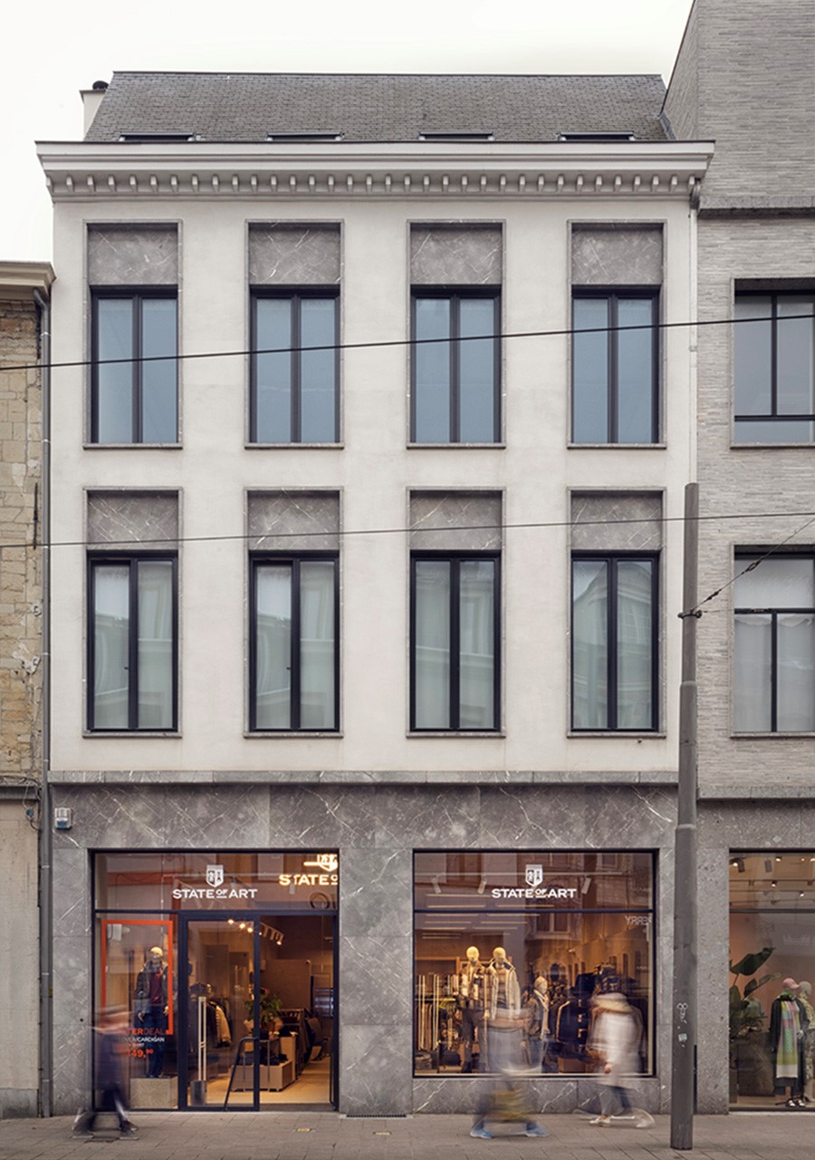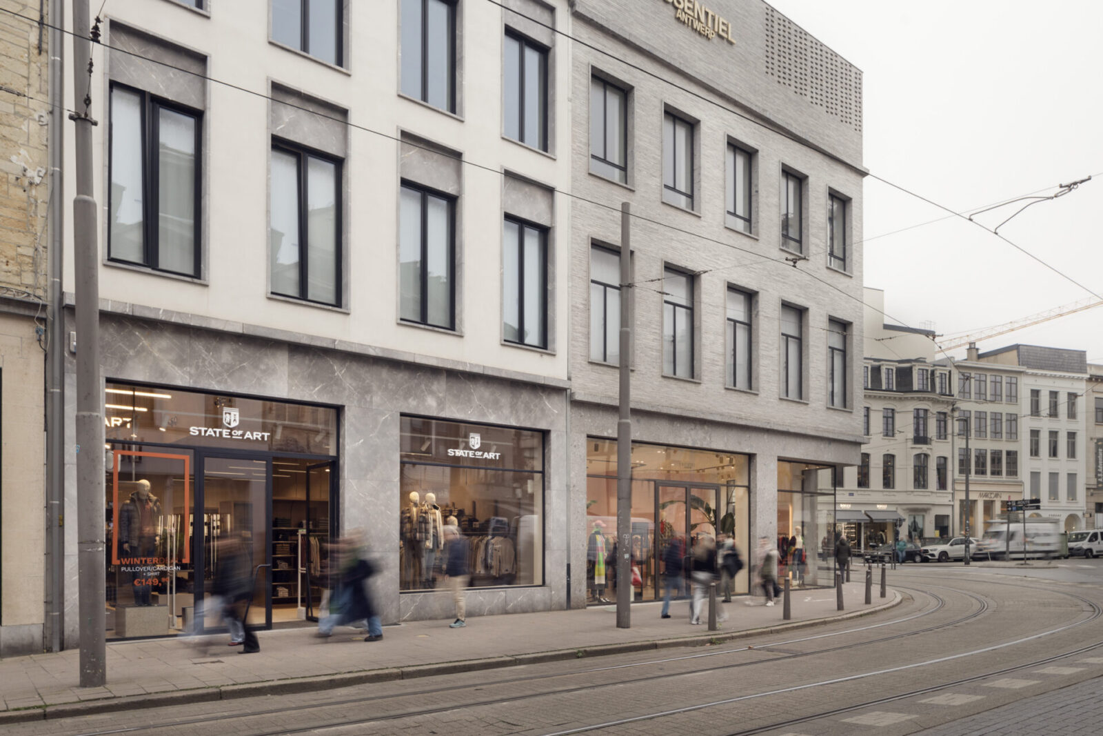Ook bij nieuwbouwprojecten streeft Athelean naar toonaangevende architectuur met een unieke en tijdloze uitstraling. Dit hoekpand van 2017 dat onderdak biedt aan Essentiel’s flagshipstore is gelegen aan de Huidevettersstraat, tussen het Theaterdistrict en het Mechelseplein met het nieuwe 5* Botanic Sanctuary hotel op wandelafstand. Een top retaillocatie hartje Antwerpen.