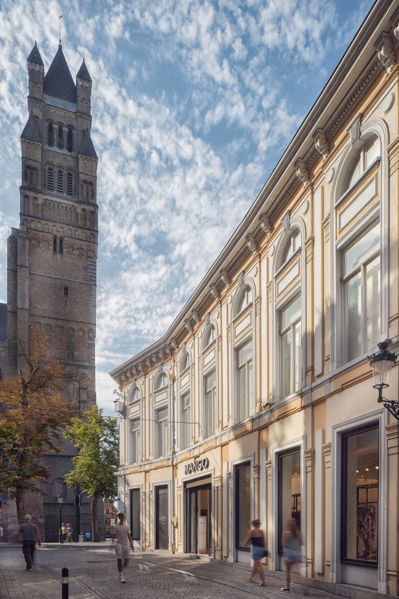 Dit indrukwekkende hoekhuis heeft een uitstekende ligging aan één van de belangrijkste winkelstraten in het drukke, toeristische centrum van Brugge. Het neoclassicistische gebouw, ontworpen door de bekende architect P. Viérin, is sinds 2009 erkend als architecturaal erfgoed. De meer dan 1.226 m² ruimte, de gevel van 30 meter en de opmerkelijk grote ramen zorgen voor een maximale zichtbaarheid. Een unieke kans in Brugge.
